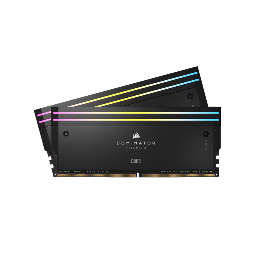 CORSAIR DOMINATOR TITANIUM RGB DDR5 Memory combines clean, refined styling with superior die-cast aluminum construction and advanced lighting design for a premium memory experience. Optimized for Intel® systems.